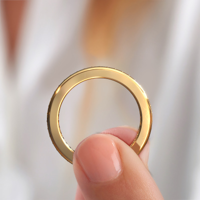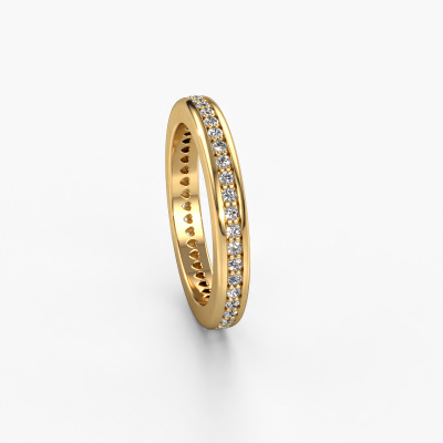 This extraordinary ring is called Elvire 3. This type of ring is known as a memoire ring, because it's birthstones are set in a continuous line. This makes it easy to combine with other rings. The band of this 14 Carat gold stackable ring is set in a combination of diamond and diamond 0.48 crt. You can easily choose the combination you prefer online. As you can see, a single diamond is set in this single alliance gold stackable ring. The memoire ring represents collaboration. And that is precisely what these gemstones do, collaborate. Together they add a beautiful effect to the band of a modern stackable ring! Such a meaningful ring, wouldn't you agree? All of our hand selected diamonds are positioned by hand by our expert goldsmith. It's a precise task, which can only be completed successfully through the combination of pure craftsmanship and usage of the latest techniques which give it an optimal effect. To create a perfect reflection of light, all the gemstones have to be perfectly aligned in the same way. During manufacturing, the expert goldsmith will therefore monitor the reflection of light constantly to check whether the diamonds are aligned properly. This requires a skilled hand and a lot of patience but then the end product will be a true piece of art. And that is our mission!By using a combination of the latest modern techniques, combined with ancient crafting, we can make all our rings in our own studio. Each jewel is made to order. This is advantageous because we can offer you a price you won't find anywhere else.Our team of talented, passionate designers add new ring designs to our online collection daily. Our objective in doing so, is to be able to offer you a wide variety of jewels. Please feel free to request a quote if you have specific wishes for your ring. We guarantee to make you an offer you can't refuse.To make it easier for you, we offer a 30 day return policy. Check our terms and conditions.