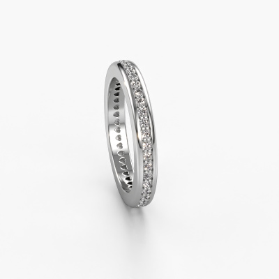 This extraordinary ring is called Elvire 3. This type of ring is known as a memoire ring, because it's birthstones are set in a continuous line. This makes it easy to combine with other rings. The band of this 14 Carat white gold stackable ring is set in a combination of zirconia and zirconia 1.3 mm. You can easily choose the combination you prefer online. As you can see, a single zirconia is set in this single alliance white gold stackable ring. The memoire ring represents collaboration. And that is precisely what these gemstones do, collaborate. Together they add a beautiful effect to the band of a modern stackable ring! Such a meaningful ring, wouldn't you agree? All of our hand selected cz-stones are positioned by hand by our expert goldsmith. It's a precise task, which can only be completed successfully through the combination of pure craftsmanship and usage of the latest techniques which give it an optimal effect. To create a perfect reflection of light, all the gemstones have to be perfectly aligned in the same way. During manufacturing, the expert goldsmith will therefore monitor the reflection of light constantly to check whether the cz-stones are aligned properly. This requires a skilled hand and a lot of patience but then the end product will be a true piece of art. And that is our mission!By using a combination of the latest modern techniques, combined with ancient crafting, we can make all our rings in our own studio. Each jewel is made to order. This is advantageous because we can offer you a price you won't find anywhere else.Our team of talented, passionate designers add new ring designs to our online collection daily. Our objective in doing so, is to be able to offer you a wide variety of jewels. Please feel free to request a quote if you have specific wishes for your ring. We guarantee to make you an offer you can't refuse.To make it easier for you, we offer a 30 day return policy. Check our terms and conditions.