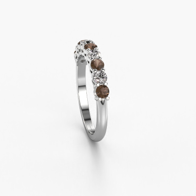 This extraordinary ring is called Michelle 9. This type of ring is known as a memoire ring, because its gemstones are set in a continuous line. This makes it easy to combine with other rings. The band of this platinum ring is set in a combination of smokey quartz and lab-grown diamond 2.7 mm. You can easily choose the combination you prefer online. As you can see, a single smokey quartz is set in this single alliance platinum ring. The memoire ring represents collaboration. And that is precisely what these gemstones do, collaborate. Together they add a beautiful effect to the band of a classic ring! Such a meaningful ring, wouldn't you agree? All of our hand selected smokey quartz are positioned by hand by our expert goldsmith. It's a precise task, which can only be completed successfully through the combination of pure craftsmanship and usage of the latest techniques which give it an optimal effect. To create a perfect reflection of light, all the gemstones have to be perfectly aligned in the same way. During manufacturing, the expert goldsmith will therefore monitor the reflection of light constantly to check whether the smokey quartz are aligned properly. This requires a skilled hand and a lot of patience but then the end product will be a true piece of art. And that is our mission!Because we design and deliver our own rings, we can offer you a ring at a price you won't find anywhere else. A ring is made to order, which helps prevent excess supplies, so we can make you a great price offer. We understand it feels risky, buying your ring online, but we will gladly assist in the designing process, taking your budget into consideration.Our team of talented, passionate designers add new ring designs to our online collection daily. Our objective in doing so, is to be able to offer you a wide variety of jewels. Please feel free to request a quote if you have specific wishes for your ring. We guarantee to make you an offer you can't refuse.To make it easier for you, we offer a 30 day return policy. Check our terms and conditions.