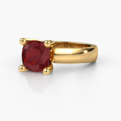 Are you looking for a birthstones ring with an eye-catching single gemstone? How do you like this Clelia CUS ring? This gold Clelia CUS ring is set with a beautiful 8 mm cushion ruby. The ruby is carefully selected by our ruby suppliers. Subsequently, these gemstones are then set by our goldsmith according to ancient tradition. The ring will then be polished to perfection creating a unique ring with a stunning ruby. Created especially for you. The best part of this birthstones ring is that you can customize it to your own liking. Your style, your choice, your ring. On top of that, your modern gold ring will be made by hand with eco-friendly materials! Please feel free to easily customize the ring, using our online tool.Because we design and deliver our own rings, we can offer you a ring at a price you won't find anywhere else. A ring is made to order, which helps prevent excess supplies, so we can make you a great price offer. We understand it feels risky, buying your ring online, but we will gladly assist in the designing process, taking your budget into consideration.To make it easier for you, we offer a 30 day return policy. Check our terms and conditions.