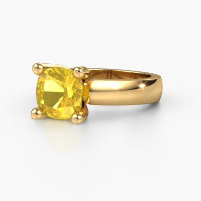 Are you looking for a birthstones ring with an eye-catching single gemstone? How do you like this Clelia CUS ring? This gold Clelia CUS ring is set with a beautiful 8 mm cushion yellow sapphire. The yellow sapphire is carefully selected by our yellow sapphire suppliers. Subsequently, these gemstones are then set by our goldsmith according to ancient tradition. The ring will then be polished to perfection creating a unique ring with a stunning yellow sapphire. Created especially for you. The best part of this birthstones ring is that you can customize it to your own liking. Your style, your choice, your ring. On top of that, your modern gold ring will be made by hand with eco-friendly materials! Please feel free to easily customize the ring, using our online tool.Because we design and deliver our own rings, we can offer you a ring at a price you won't find anywhere else. A ring is made to order, which helps prevent excess supplies, so we can make you a great price offer. We understand it feels risky, buying your ring online, but we will gladly assist in the designing process, taking your budget into consideration.To make it easier for you, we offer a 30 day return policy. Check our terms and conditions.