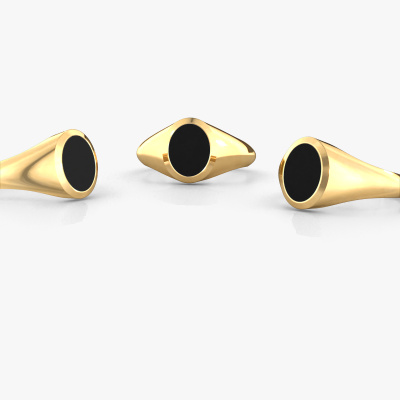 This gold women´s signet ring is a true work of art! This is our beautiful Evon 1 signet ring and it is set with a oval shape black enamel. In our crafting studio, we use a combination of the latest techniques and ancient traditional craftsmanship, so we are able to create a detailed perfect signet ring. Our expert goldsmiths are fascinated by signet rings. The signet ring can be engraved with initials or a family weapon. Signet rings with family weapons can be handed down from generation to generation and that usually is the case. On top of that, a signet ring is a beautiful, classy piece of jewelry which is trending once more. More than one reason to start or extend the tradition. Please browse our online database for more options on engravings. You can find the departments of our education center at the bottom of this page. Our goldsmiths passionately create your customized signet ring to your liking with the utmost care. The gold signet ring, as shown here, can be customized using our online tool. Feel free to ask our jewel designers for assistance if you want changes made which are unavailable in our online tool. We are happy to answer your questions.After receiving your order, our goldsmiths will passionately start the creative process of making your ring in our own studio. Because we don't have a big stockpile, these costs will not be passed on to you. Our pricing is proof of that! We offer top quality jewels at lowest price, guaranteed.To make it easier for you, we offer a 30 day return policy. Check our terms and conditions.
