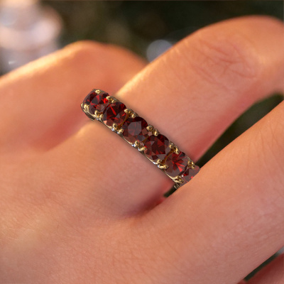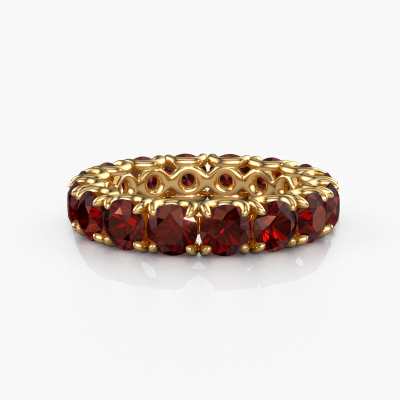 This Estee 4.2 ring in 14 Carat gold is set with garnet. This gold stacked Estee 4.2 ring is the perfect addition to your ring collection! As the name suggests, it is a ring which can be combined on one finger with another ring. It gives you the opportunity to create your own style. A stacked ring usually represents a certain memory of someone special or a memorable moment. It is common to combine a stacked ring, representing an anniversary, with a wedding ring. But this eternity ring, combined with your other rings, also makes a classy fashion item. The eternity Estee 4.2 ring, as shown here, can be customized to your liking. Our online tool offers many different options but please feel free to contact us if you want changes made to your Estee 4.2 ring, which are unavailable in our online tool.After receiving your order, our goldsmiths will passionately start the creative process of making your ring in our own studio. Because we don't have a big stockpile, these costs will not be passed on to you. Our pricing is proof of that! We offer top quality jewels at lowest price, guaranteed.To make it easier for you, we offer a 30 day return policy. Check our terms and conditions.