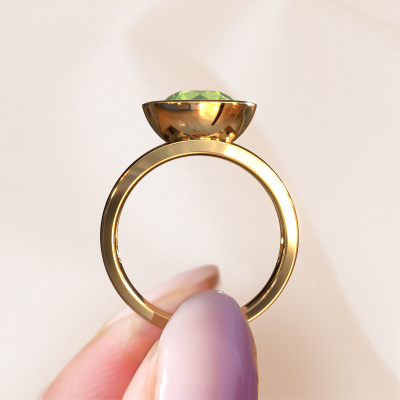 Are you looking for a elegant ring with an eye-catching single gemstone? How do you like this Maxime ring? This gold Maxime ring is set with a beautiful 8 mm round peridot. The peridot is carefully selected by our peridot suppliers. Subsequently, these gemstones are then set by our goldsmith according to ancient tradition. The ring will then be polished to perfection creating a unique ring with a stunning peridot. Created especially for you. How do you like this modern gold ring? Simply customize this Maxime ring, using our online tool. Subsequently, your personal elegant Maxime ring will be made by hand by our goldsmiths. Precious metals and gemstones can be customized to your liking. Do you have specific preferences which are unavailable in our online tool? Please feel free to contact us. We will customize your personal modern ring to your liking.Are you on a budget? Please feel free to contact us, so we can go discuss your options. We offer our rings at guaranteed best price, because we make them to order. You won't find such a price anywhere else!To make it easier for you, we offer a 30 day return policy. Check our terms and conditions.