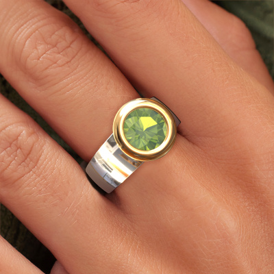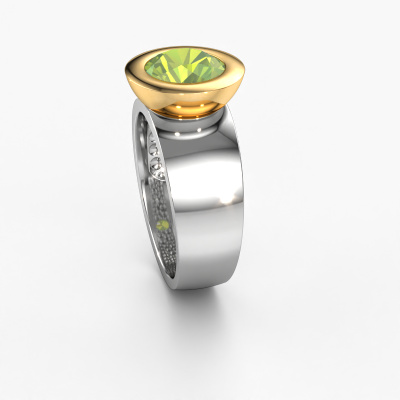 Are you looking for a elegant ring with an eye-catching single gemstone? How do you like this Maxime ring? This white gold Maxime ring is set with a beautiful 8 mm round peridot. The peridot is carefully selected by our peridot suppliers. Subsequently, these gemstones are then set by our goldsmith according to ancient tradition. The ring will then be polished to perfection creating a unique ring with a stunning peridot. Created especially for you. How do you like this modern white gold ring? Simply customize this Maxime ring, using our online tool. Subsequently, your personal elegant Maxime ring will be made by hand by our goldsmiths. Precious metals and gemstones can be customized to your liking. Do you have specific preferences which are unavailable in our online tool? Please feel free to contact us. We will customize your personal modern ring to your liking.Are you on a budget? Please feel free to contact us, so we can go discuss your options. We offer our rings at guaranteed best price, because we make them to order. You won't find such a price anywhere else!To make it easier for you, we offer a 30 day return policy. Check our terms and conditions.