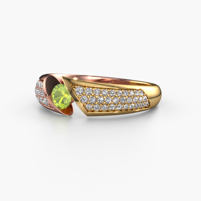This exclusive rose gold Hojalien 3 ring is a true work of art! This ring is made of 14 Carat rose gold and is set with 4 mm round peridot. The smallest ornaments are crafted by our goldsmith with a lot of patience and great passion. In order to create this ring with great precision, this craft requires a keen eye and a skillful hand. A challenge which ignites a fire in our expert goldsmiths. The exquisite peridot are set in a way that their unique qualities are strengthened. This gives the ring an even more glamorous appearance. The ring is unique by itself though, because of the natural birthstones we selected especially for this Hojalien 3 ring. And by choosing the precious metal yourself, you create a unique ring. The best part of this pavé set ring is that you can customize it to your own liking. Your style, your choice, your ring. On top of that, your exclusive rose gold ring will be made by hand with eco-friendly materials! Please feel free to easily customize the ring, using our online tool.By using a combination of the latest modern techniques, combined with ancient crafting, we can make all our rings in our own studio. Each jewel is made to order. This is advantageous because we can offer you a price you won't find anywhere else.To make it easier for you, we offer a 30 day return policy. Check our terms and conditions.