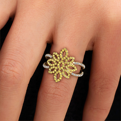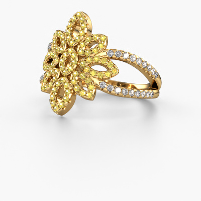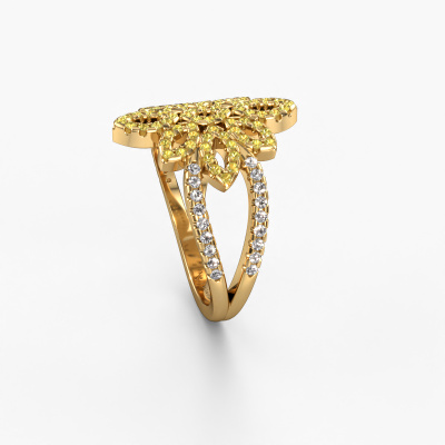 How would you describe your own style? Are you looking for something uniquely different? This pavé set gold Karina ring is astonishing! Simply customize to your or her own liking. This ring is set with yellow sapphire. These yellow sapphire have been carefully selected because your ring must be adorned with nothing but the most beautiful gemstone. Wouldn't you agree? Our expert goldsmith will create your ring in our own crafting studios, where the yellow sapphire will be set with care. The ring will then be polished to perfection to give it that extra sparkle. It's a perfect ring for a woman of excellent taste!A customized vintage ring is the perfect gift! New exquisite designs are added daily by our team of passionate goldsmiths. And each design can be customized. Simply customize the precious metals and the color of gemstones which will be used, for example. This makes your design of the vintage karina ring truly unique!After receiving your order, our goldsmiths will passionately start the creative process of making your ring in our own studio. Because we don't have a big stockpile, these costs will not be passed on to you. Our pricing is proof of that! We offer top quality jewels at lowest price, guaranteed.To make it easier for you, we offer a 30 day return policy. Check our terms and conditions.