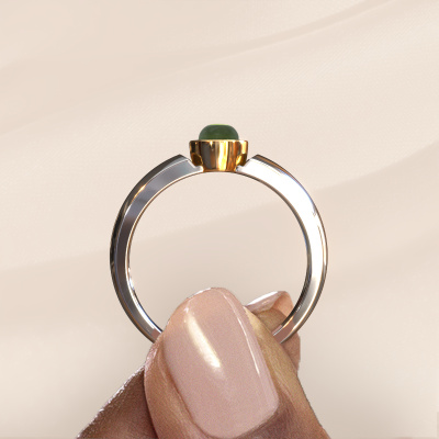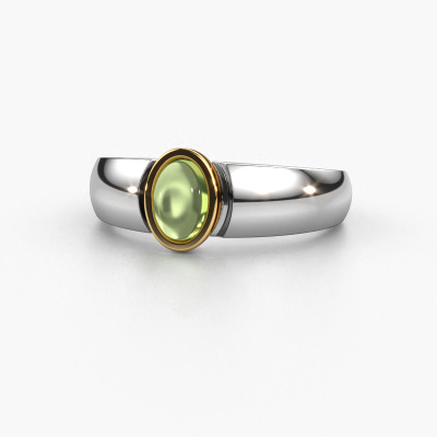 In this photo the white gold Tonneke ring is set with a cabochon peridot. Cabochon means a peridot is shaped first, not faceted, into a specific shape, such as a drop, heart or oval cabochon. Subsequently, it is polished until the gemstone has a orb shaped surface. A cabochon gemstone is a stunning, classy eye-catcher that matches perfectly with a contemporary as well as a vintage style. Our expert goldsmiths shape the tasteful ring to perfection which makes it unique. The cabochon peridot is set so its unique qualities are strengthened. A customized modern ring is the perfect gift! New exquisite designs are added daily by our team of passionate goldsmiths. And each design can be customized. Simply customize the precious metals and the color of gemstones which will be used, for example. This makes your design of the modern Tonneke ring truly unique!Because we design and deliver our own rings, we can offer you a ring at a price you won't find anywhere else. A ring is made to order, which helps prevent excess supplies, so we can make you a great price offer. We understand it feels risky, buying your ring online, but we will gladly assist in the designing process, taking your budget into consideration.To make it easier for you, we offer a 30 day return policy. Check our terms and conditions.