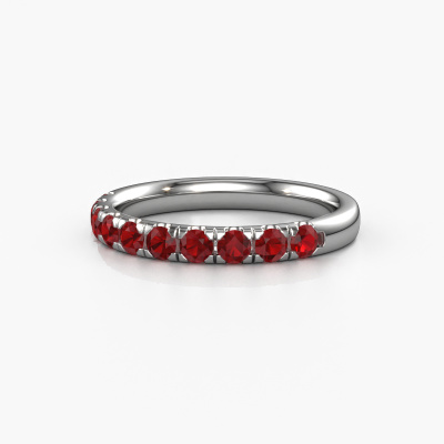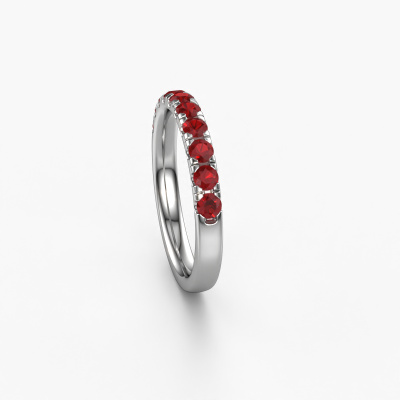 This ring is called Jackie Half. It is made of platinum and is set with 2.4 mm ruby. Are you looking for a unique platinum stackable ring with a modern appearance? Then this is the ring for you. Simply customize to your or her liking. Perfect for a modern, contemporary woman! This half eternity stackable ring is adorned with stunning ruby. It was carefully selected because your stackable ring must be adorned with nothing but the most beautiful gemstones. Our expert goldsmith will create your ring in our own studio, where the ruby will be set with great care. The ring will then be polished to perfection to create a beautiful ring. After receiving your order, our goldsmiths will passionately start the creative process of making your ring in our own studio. Because we don't have a big stockpile, these costs will not be passed on to you. Our pricing is proof of that! We offer top quality jewels at lowest price, guaranteed.New jewelry designs are added to our online collection daily. Our team of passionate designers strive to create extraordinary and diverse designs. Have you seen a ring you like? Please feel free to contact us. Based on a good price/ quality ratio, we will make you an offer you can't refuse!To make it easier for you, we offer a 30 day return policy. Check our terms and conditions.