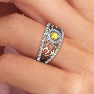 How would you describe your own style? Are you looking for something uniquely different? This special platinum Lavona ring is astonishing! Simply customize to your or her own liking. This ring is set with yellow sapphire. These yellow sapphire have been carefully selected because your ring must be adorned with nothing but the most beautiful gemstone. Wouldn't you agree? Our expert goldsmith will create your ring in our own crafting studios, where the yellow sapphire will be set with care. The ring will then be polished to perfection to give it that extra sparkle. It's a perfect ring for a woman of excellent taste!Customize your own specialLavona ring, which will then be created by our goldsmiths with great passion. Do you prefer a different option than is shown here in the platinum Lavona ring? Then our online tools offers various options. Feel free to ask us for help if you are unable to succeed. We are happy to answer your questions!Are you on a budget? Please feel free to contact us, so we can go discuss your options. We offer our rings at guaranteed best price, because we make them to order. You won't find such a price anywhere else!To make it easier for you, we offer a 30 day return policy. Check our terms and conditions.