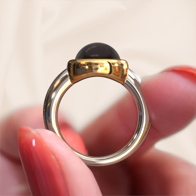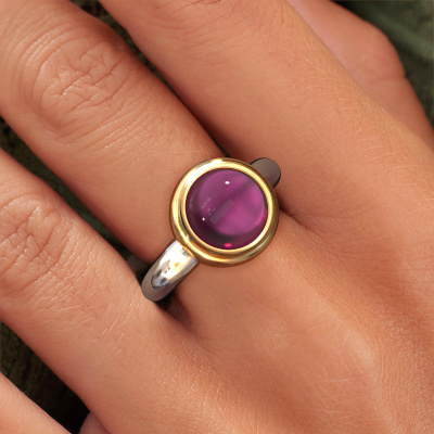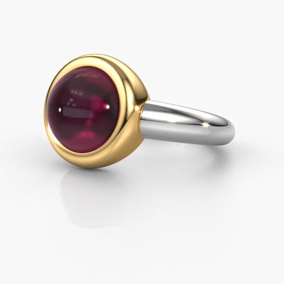 In this photo the white gold Jenae ring is set with a cabochon rhodolite. Cabochon means a rhodolite is shaped first, not faceted, into a specific shape, such as a drop, heart or round cabochon. Subsequently, it is polished until the gemstone has a orb shaped surface. A cabochon gemstone is a stunning, classy eye-catcher that matches perfectly with a contemporary as well as a vintage style. Our expert goldsmiths shape the beautiful ring to perfection which makes it unique. The cabochon rhodolite is set so its unique qualities are strengthened. A customized trendy ring is the perfect gift! New exquisite designs are added daily by our team of passionate goldsmiths. And each design can be customized. Simply customize the precious metals and the color of gemstones which will be used, for example. This makes your design of the trendy Jenae ring truly unique!By using a combination of the latest modern techniques, combined with ancient crafting, we can make all our rings in our own studio. Each jewel is made to order. This is advantageous because we can offer you a price you won't find anywhere else.To make it easier for you, we offer a 30 day return policy. Check our terms and conditions.