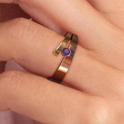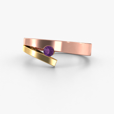This ring is called Rosario. It is made of 14 Carat rose gold and is set with 3 mm amethyst. Are you looking for a unique rose gold ring with a modern appearance? Then this is the ring for you. Simply customize to your or her liking. Perfect for a modern, contemporary woman! This edgy ring is adorned with stunning amethyst. It was carefully selected because your ring must be adorned with nothing but the most beautiful gemstones. Our expert goldsmith will create your ring in our own studio, where the amethyst will be set with great care. The ring will then be polished to perfection to create a beautiful ring. Are you on a budget? Please feel free to contact us, so we can go discuss your options. We offer our rings at guaranteed best price, because we make them to order. You won't find such a price anywhere else!
