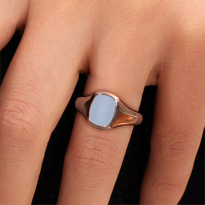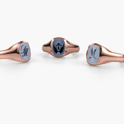 This rose gold women´s signet ring is a true work of art! This is our elegant Zelda signet ring and it is set with a rectangle antique light blue sardonyx. In our crafting studio, we use a combination of the latest techniques and ancient traditional craftsmanship, so we are able to create a detailed perfect signet ring. Our expert goldsmiths are fascinated by signet rings. The signet ring can be engraved with initials or a family weapon. Signet rings with family weapons can be handed down from generation to generation and that usually is the case. On top of that, a signet ring is a beautiful, classy piece of jewelry which is trending once more. More than one reason to start or extend the tradition. Please browse our online database for more options on engravings. You can find the departments of our education center at the bottom of this page. Customize your own elegantZelda signet ring, which will then be created by our goldsmiths with great passion. Do you prefer a different option than is shown here in the rose gold Zelda signet ring? Then our online tools offers various options. Feel free to ask us for help if you are unable to succeed. We are happy to answer your questions!After receiving your order, our goldsmiths will passionately start the creative process of making your ring in our own studio. Because we don't have a big stockpile, these costs will not be passed on to you. Our pricing is proof of that! We offer top quality jewels at lowest price, guaranteed.To make it easier for you, we offer a 30 day return policy. Check our terms and conditions.
