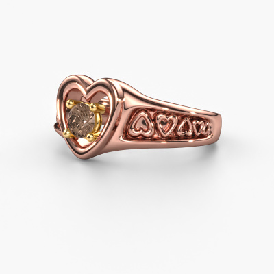 This symbolic rose gold Eura ring is set with brown diamond. For some, a ring is nothing more than a beautiful fashion item but they can become a meaningful keepsake. A ring such as this can be worn daily and it matches numerous different styles. Designing your own unique ring, makes it even more special. You are reminded of its uniqueness every time you look at it. Perhaps it reminds you of someone special. It might bring back memories. Unforgettable moments, represented in one ring. The beauty of it all is that the used precious metals and gemstones will last a lifetime. A lifetime of memories deserves nothing less! The best part of this symbolic ring is that you can customize it to your own liking. Your style, your choice, your ring. On top of that, your fantasy rose gold ring will be made by hand with eco-friendly materials! Please feel free to easily customize the ring, using our online tool.Because we design and deliver our own rings, we can offer you a ring at a price you won't find anywhere else. A ring is made to order, which helps prevent excess supplies, so we can make you a great price offer. We understand it feels risky, buying your ring online, but we will gladly assist in the designing process, taking your budget into consideration.To make it easier for you, we offer a 30 day return policy. Check our terms and conditions.