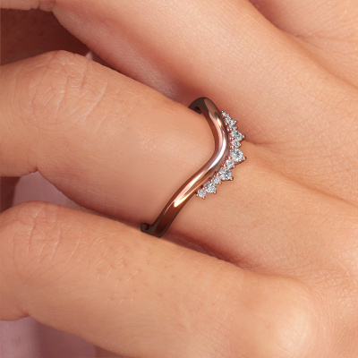 This Lyla A stackable ring in 14 Carat rose gold is set with lab-grown diamond. This rose gold stacked Lyla A ring is the perfect addition to your ring collection! As the name suggests, it is a ring which can be combined on one finger with another ring. It gives you the opportunity to create your own style. A stacked ring usually represents a certain memory of someone special or a memorable moment. It is common to combine a stacked ring, representing an anniversary, with a wedding ring. But this beautiful ring, combined with your other rings, also makes a classy fashion item. As soon as you finished designing your Lyla A stackable ring with our online tool, our goldsmiths will start their creative process of making your ring. This will be done with passion and care, according ancient crafting. On top of that, our jewels are made of eco-friendly materials. Simply customize online with our online tool, if you want any changes made. If you want specific changes made to your Lyla A stackable ring, that are unavailable in our online tool, please feel free to contact our expert designers.Because we design and deliver our own rings, we can offer you a ring at a price you won't find anywhere else. A ring is made to order, which helps prevent excess supplies, so we can make you a great price offer. We understand it feels risky, buying your ring online, but we will gladly assist in the designing process, taking your budget into consideration.To make it easier for you, we offer a 30 day return policy. Check our terms and conditions.