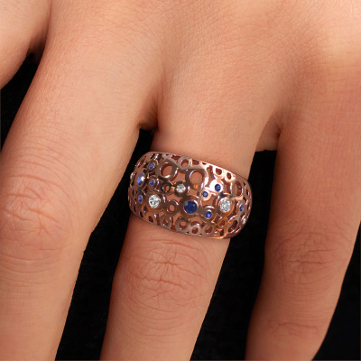 How would you describe your own style? Are you looking for something uniquely different? This wide rose gold Jaylinn ring is astonishing! Simply customize to your or her own liking. This ring is set with sapphire. These sapphire have been carefully selected because your ring must be adorned with nothing but the most beautiful gemstone. Wouldn't you agree? Our expert goldsmith will create your ring in our own crafting studios, where the sapphire will be set with care. The ring will then be polished to perfection to give it that extra sparkle. It's a perfect ring for a woman of excellent taste!How do you like this fantasy rose gold ring? Simply customize this Jaylinn ring, using our online tool. Subsequently, your personal wide Jaylinn ring will be made by hand by our goldsmiths. Precious metals and gemstones can be customized to your liking. Do you have specific preferences which are unavailable in our online tool? Please feel free to contact us. We will customize your personal fantasy ring to your liking.By using our modern techniques, we can design and customize the finest quality jewels with the utmost care for you. Our rings are always priced 30 percent lower than other jewelers. We make rings to order, so we don't have to maintain a large stock. If you have a certain budget, we are more than happy to advice you accordingly.To make it easier for you, we offer a 30 day return policy. Check our terms and conditions.