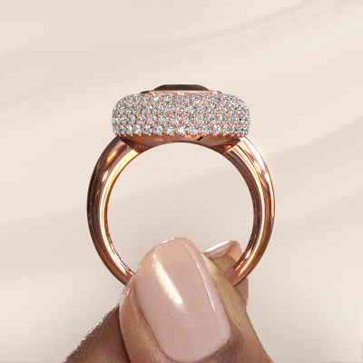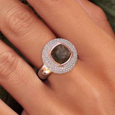 This exclusive rose gold Keshia ring is a true work of art! This ring is made of 14 Carat rose gold and is set with 8 mm cushion smokey quartz. The smallest ornaments are crafted by our goldsmith with a lot of patience and great passion. In order to create this ring with great precision, this craft requires a keen eye and a skillful hand. A challenge which ignites a fire in our expert goldsmiths. The exquisite smokey quartz are set in a way that their unique qualities are strengthened. This gives the ring an even more glamorous appearance. The ring is unique by itself though, because of the natural birthstones we selected especially for this Keshia ring. And by choosing the precious metal yourself, you create a unique ring. Our goldsmiths passionately create your customized ring to your liking with the utmost care. The rose gold ring, as shown here, can be customized using our online tool. Feel free to ask our jewel designers for assistance if you want changes made which are unavailable in our online tool. We are happy to answer your questions.By using our modern techniques, we can design and customize the finest quality jewels with the utmost care for you. Our rings are always priced 30 percent lower than other jewelers. We make rings to order, so we don't have to maintain a large stock. If you have a certain budget, we are more than happy to advice you accordingly.To make it easier for you, we offer a 30 day return policy. Check our terms and conditions.
