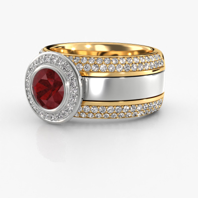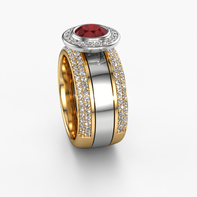 Because of its detailed finish, this wide ring with ruby has a stylish appearance. A pavé set ring that fits the contemporary woman like a glove. This white gold ring, our Roxie, is a true eye-catcher indeed! As soon as we know what you desire, we