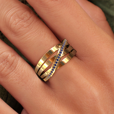 Because of its detailed finish, this wide ring with sapphire has a stylish appearance. A wide ring that fits the contemporary woman like a glove. This gold ring, our Esmee, is a true eye-catcher indeed! As soon as we know what you desire, we will create your ring in our own crafting studio. We work according an innovative process. We use a combination of the latest techniques and ancient traditional craftsmanship, so we are able to create a perfectly designed ring. Our expert goldsmiths strive for perfection so they won't stop until a perfect ring, a true work of art, is created especially for you!The wide Esmee ring, as shown here, can be customized to your liking. Our online tool offers many different options but please feel free to contact us if you want changes made to your Esmee ring, which are unavailable in our online tool.Because we design and deliver our own rings, we can offer you a ring at a price you won't find anywhere else. A ring is made to order, which helps prevent excess supplies, so we can make you a great price offer. We understand it feels risky, buying your ring online, but we will gladly assist in the designing process, taking your budget into consideration.To make it easier for you, we offer a 30 day return policy. Check our terms and conditions.