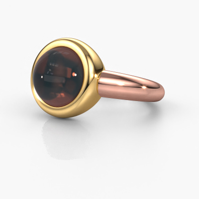 In this photo the rose gold Jenae ring is set with a cabochon smokey quartz. Cabochon means a smokey quartz is shaped first, not faceted, into a specific shape, such as a drop, heart or round cabochon. Subsequently, it is polished until the gemstone has a orb shaped surface. A cabochon gemstone is a stunning, classy eye-catcher that matches perfectly with a contemporary as well as a vintage style. Our expert goldsmiths shape the beautiful ring to perfection which makes it unique. The cabochon smokey quartz is set so its unique qualities are strengthened. A customized trendy ring is the perfect gift! New exquisite designs are added daily by our team of passionate goldsmiths. And each design can be customized. Simply customize the precious metals and the color of gemstones which will be used, for example. This makes your design of the trendy Jenae ring truly unique!By using a combination of the latest modern techniques, combined with ancient crafting, we can make all our rings in our own studio. Each jewel is made to order. This is advantageous because we can offer you a price you won't find anywhere else.To make it easier for you, we offer a 30 day return policy. Check our terms and conditions.