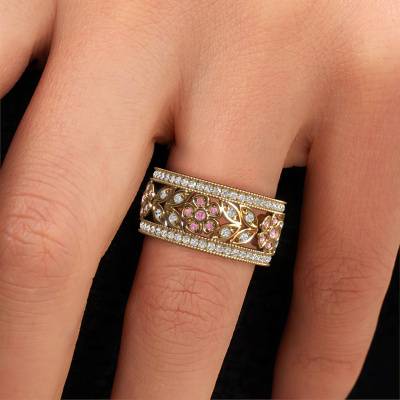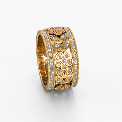 How would you describe your own style? Are you looking for something uniquely different? This special gold Elanor ring is astonishing! Simply customize to your or her own liking. This ring is set with pink sapphire. These pink sapphire have been carefully selected because your ring must be adorned with nothing but the most beautiful gemstone. Wouldn't you agree? Our expert goldsmith will create your ring in our own crafting studios, where the pink sapphire will be set with care. The ring will then be polished to perfection to give it that extra sparkle. It's a perfect ring for a woman of excellent taste!The special Elanor ring, as shown here, can be customized to your liking. Our online tool offers many different options but please feel free to contact us if you want changes made to your Elanor ring, which are unavailable in our online tool.After receiving your order, our goldsmiths will passionately start the creative process of making your ring in our own studio. Because we don't have a big stockpile, these costs will not be passed on to you. Our pricing is proof of that! We offer top quality jewels at lowest price, guaranteed.To make it easier for you, we offer a 30 day return policy. Check our terms and conditions.