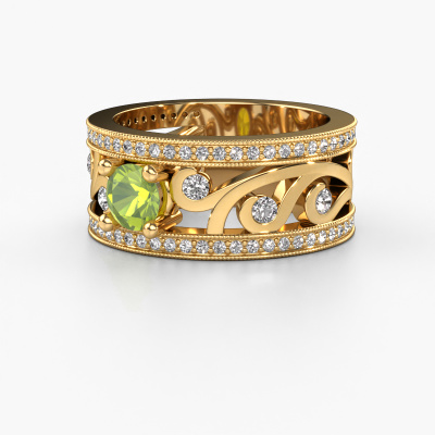 Do you have a vintage fetish? Then this gold Sanne ring suits you perfectly. It's a contemporary design, based on vintage designs. A slightly romantic, extraordinary design! Even more when you customize to your liking. This special ring is set with exquisite peridot. As you can see, you can simply choose a gemstone that matches your style. Each gemstone is carefully selected by our merchants whom are spread throughout the world. Nothing but the best gems for our expert goldsmith! After all, it is his crowning glory!Customize your own specialSanne ring, which will then be created by our goldsmiths with great passion. Do you prefer a different option than is shown here in the gold Sanne ring? Then our online tools offers various options. Feel free to ask us for help if you are unable to succeed. We are happy to answer your questions!After receiving your order, our goldsmiths will start the creative process of making your Sanne ring. We don't keep stock. This is advantageous because these costs will not be passed on to you. Therefore, we can offer jewelry at exceptionally low prices.To make it easier for you, we offer a 30 day return policy. Check our terms and conditions.