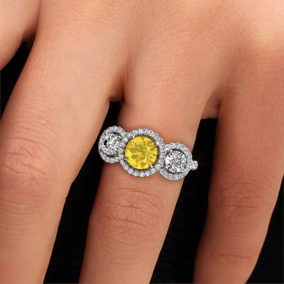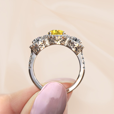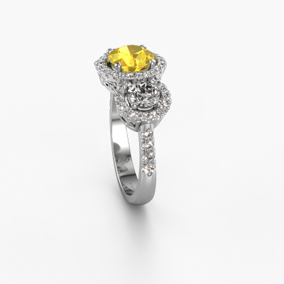 This exclusive platinum Lacie ring is a true work of art! This ring is made of platinum and is set with 6.5 mm round yellow sapphire. The smallest ornaments are crafted by our goldsmith with a lot of patience and great passion. In order to create this ring with great precision, this craft requires a keen eye and a skillful hand. A challenge which ignites a fire in our expert goldsmiths. The exquisite yellow sapphire are set in a way that their unique qualities are strengthened. This gives the ring an even more glamorous appearance. The ring is unique by itself though, because of the natural birthstones we selected especially for this Lacie ring. And by choosing the precious metal yourself, you create a unique ring. Customize your own specialLacie ring, which will then be created by our goldsmiths with great passion. Do you prefer a different option than is shown here in the platinum Lacie ring? Then our online tools offers various options. Feel free to ask us for help if you are unable to succeed. We are happy to answer your questions!Because we design and deliver our own rings, we can offer you a ring at a price you won't find anywhere else. A ring is made to order, which helps prevent excess supplies, so we can make you a great price offer. We understand it feels risky, buying your ring online, but we will gladly assist in the designing process, taking your budget into consideration.To make it easier for you, we offer a 30 day return policy. Check our terms and conditions.
