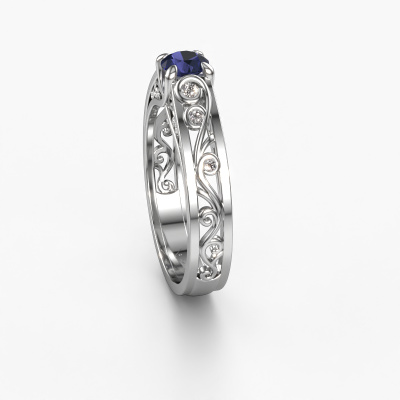 Do you have a vintage fetish? Then this white gold Quinty ring suits you perfectly. It's a contemporary design, based on vintage designs. A slightly romantic, extraordinary design! Even more when you customize to your liking. This special ring is set with exquisite sapphire. As you can see, you can simply choose a gemstone that matches your style. Each gemstone is carefully selected by our merchants whom are spread throughout the world. Nothing but the best gems for our expert goldsmith! After all, it is his crowning glory!The special Quinty ring, as shown here, can be customized to your liking. Our online tool offers many different options but please feel free to contact us if you want changes made to your Quinty ring, which are unavailable in our online tool.By using a combination of the latest modern techniques, combined with ancient crafting, we can make all our rings in our own studio. Each jewel is made to order. This is advantageous because we can offer you a price you won't find anywhere else.To make it easier for you, we offer a 30 day return policy. Check our terms and conditions.