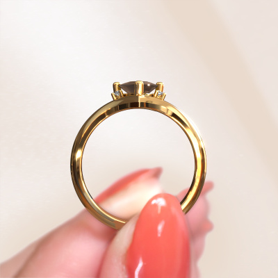 This ring called Arlette is made of 14 Carat gold and is set with smokey quartz. Are you in the market for a unique gold ring with a modern twist? Then this ring might suit you. Simply customize to your or her liking. It suits the contemporary