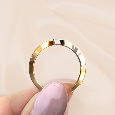 This ring called Evalyn 1 is made of 14 Carat gold and is set with diamond. Are you in the market for a unique gold ring with a modern twist? Then this ring might suit you. Simply customize to your or her liking. It suits the contemporary modern woman. This stylish ring is set with beautiful diamond. This has been carefully selected. Because your ring must be adorned with nothing but the most stunning gemstone. Our expert goldsmith will create your ring in our own studio, where the diamond will be set with great care. The ring will then be polished to perfection to create a stunning ring. By using a combination of the latest modern techniques, combined with ancient crafting, we can make all our rings in our own studio. Each jewel is made to order. This is advantageous because we can offer you a price you won't find anywhere else.New jewelry designs are added to our online collection daily. Our team of passionate designers strive to create extraordinary and diverse designs. Have you seen a ring you like? Please feel free to contact us. Based on a good price/ quality ratio, we will make you an offer you can't refuse!To make it easier for you, we offer a 30 day return policy. Check our terms and conditions.