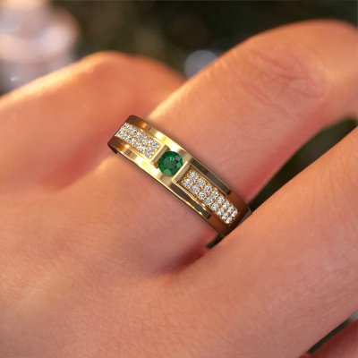 This ring called Mable is made of 14 Carat gold and is set with emerald. Are you in the market for a unique gold ring with a modern twist? Then this ring might suit you. Simply customize to your or her liking. It suits the contemporary modern woman. This stylish ring is set with beautiful emerald. This has been carefully selected. Because your ring must be adorned with nothing but the most stunning gemstone. Our expert goldsmith will create your ring in our own studio, where the emerald will be set with great care. The ring will then be polished to perfection to create a stunning ring. After receiving your order, our goldsmiths will passionately start the creative process of making your ring in our own studio. Because we don't have a big stockpile, these costs will not be passed on to you. Our pricing is proof of that! We offer top quality jewels at lowest price, guaranteed.New jewelry designs are added to our online collection daily. Our team of passionate designers strive to create extraordinary and diverse designs. Have you seen a ring you like? Please feel free to contact us. Based on a good price/ quality ratio, we will make you an offer you can't refuse!To make it easier for you, we offer a 30 day return policy. Check our terms and conditions.