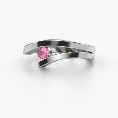 This ring called Evalyn 1 is made of 14 Carat white gold and is set with pink sapphire. Are you in the market for a unique white gold ring with a modern twist? Then this ring might suit you. Simply customize to your or her liking. It suits the contemporary modern woman. This stylish ring is set with beautiful pink sapphire. This has been carefully selected. Because your ring must be adorned with nothing but the most stunning gemstone. Our expert goldsmith will create your ring in our own studio, where the pink sapphire will be set with great care. The ring will then be polished to perfection to create a stunning ring. By using a combination of the latest modern techniques, combined with ancient crafting, we can make all our rings in our own studio. Each jewel is made to order. This is advantageous because we can offer you a price you won't find anywhere else.New jewelry designs are added to our online collection daily. Our team of passionate designers strive to create extraordinary and diverse designs. Have you seen a ring you like? Please feel free to contact us. Based on a good price/ quality ratio, we will make you an offer you can't refuse!To make it easier for you, we offer a 30 day return policy. Check our terms and conditions.
