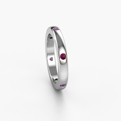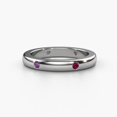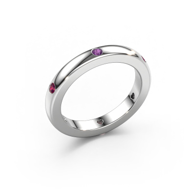 This Charla stackable ring in platinum is set with amethyst. This platinum stacked Charla ring is the perfect addition to your ring collection! As the name suggests, it is a ring which can be combined on one finger with another ring. It gives you the opportunity to create your own style. A stacked ring usually represents a certain memory of someone special or a memorable moment. It is common to combine a stacked ring, representing an anniversary, with a wedding ring. But this symbolic ring, combined with your other rings, also makes a classy fashion item. The best part of this symbolic stackable ring is that you can customize it to your own liking. Your style, your choice, your stackable ring. On top of that, your trendy platinum stackable ring will be made by hand with eco-friendly materials! Please feel free to easily customize the ring, using our online tool.By using a combination of the latest modern techniques, combined with ancient crafting, we can make all our rings in our own studio. Each jewel is made to order. This is advantageous because we can offer you a price you won't find anywhere else.To make it easier for you, we offer a 30 day return policy. Check our terms and conditions.