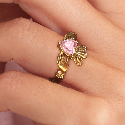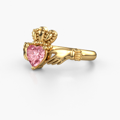 This Irish Claddagh ring is a sign of love set with a heart pink lab grown diamond. It is a remarkable, symbolic ring in which a crowned heart, held by two hands, is shown. The heart of a Claddagh ring is a symbol of love, the hands represent friendship and the crown, loyalty. A beautiful piece of jewelry to either give or receive! This symbolic 14 Carat gold Claddagh 2 ring is made by hand in our own studio by our expert goldsmiths. The symbolic Claddagh 2 ring, as shown here, can be customized to your liking. Our online tool offers many different options but please feel free to contact us if you want changes made to your Claddagh 2 ring, which are unavailable in our online tool.After receiving your order, our goldsmiths will start the creative process of making your Claddagh 2 ring. We don't keep stock. This is advantageous because these costs will not be passed on to you. Therefore, we can offer jewelry at exceptionally low prices.To make it easier for you, we offer a 30 day return policy. Check our terms and conditions.