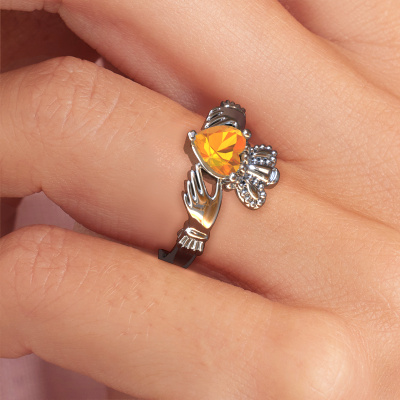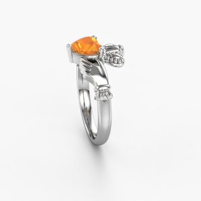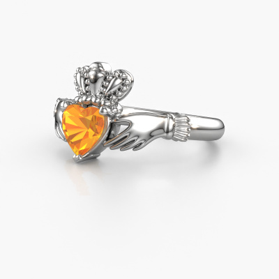 This Irish Claddagh ring is a sign of love set with a heart citrin. It is a remarkable, symbolic ring in which a crowned heart, held by two hands, is shown. The heart of a Claddagh ring is a symbol of love, the hands represent friendship and the crown, loyalty. A beautiful piece of jewelry to either give or receive! This symbolic platinum Claddagh 2 ring is made by hand in our own studio by our expert goldsmiths. The symbolic Claddagh 2 ring, as shown here, can be customized to your liking. Our online tool offers many different options but please feel free to contact us if you want changes made to your Claddagh 2 ring, which are unavailable in our online tool.After receiving your order, our goldsmiths will start the creative process of making your Claddagh 2 ring. We don't keep stock. This is advantageous because these costs will not be passed on to you. Therefore, we can offer jewelry at exceptionally low prices.To make it easier for you, we offer a 30 day return policy. Check our terms and conditions.