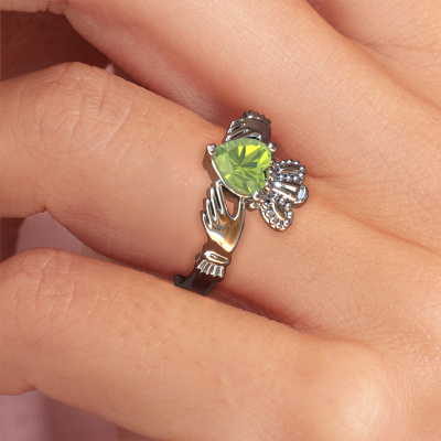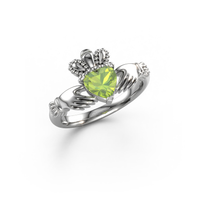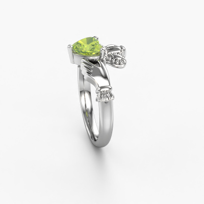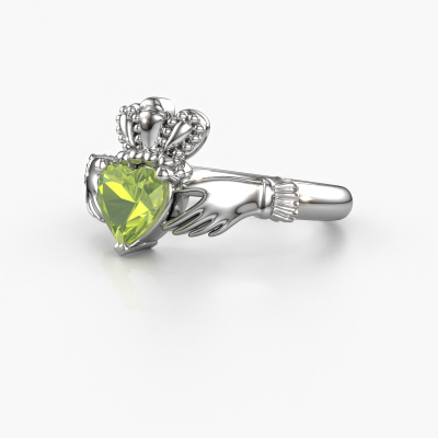 This Irish Claddagh ring is a sign of love set with a heart peridot. It is a remarkable, symbolic ring in which a crowned heart, held by two hands, is shown. The heart of a Claddagh ring is a symbol of love, the hands represent friendship and the crown, loyalty. A beautiful piece of jewelry to either give or receive! This symbolic platinum Claddagh 2 ring is made by hand in our own studio by our expert goldsmiths. The symbolic Claddagh 2 ring, as shown here, can be customized to your liking. Our online tool offers many different options but please feel free to contact us if you want changes made to your Claddagh 2 ring, which are unavailable in our online tool.After receiving your order, our goldsmiths will start the creative process of making your Claddagh 2 ring. We don't keep stock. This is advantageous because these costs will not be passed on to you. Therefore, we can offer jewelry at exceptionally low prices.To make it easier for you, we offer a 30 day return policy. Check our terms and conditions.