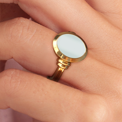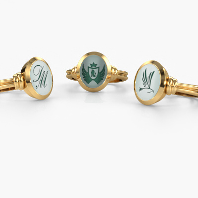 This gold women´s signet ring is a true work of art! This is our tasteful Brenda 2 signet ring and it is set with a oval shape green sardonyx. In our crafting studio, we use a combination of the latest techniques and ancient traditional craftsmanship, so we are able to create a detailed perfect signet ring. Our expert goldsmiths are fascinated by signet rings. The signet ring can be engraved with initials or a family weapon. Signet rings with family weapons can be handed down from generation to generation and that usually is the case. On top of that, a signet ring is a beautiful, classy piece of jewelry which is trending once more. More than one reason to start or extend the tradition. Please browse our online database for more options on engravings. You can find the departments of our education center at the bottom of this page. A customized traditional signet ring is the perfect gift! New exquisite designs are added daily by our team of passionate goldsmiths. And each design can be customized. Simply customize the precious metals and the color of gemstones which will be used, for example. This makes your design of the traditional Brenda 2 signet ring truly unique!After receiving your order, our goldsmiths will start the creative process of making your Brenda 2 ring. We don't keep stock. This is advantageous because these costs will not be passed on to you. Therefore, we can offer jewelry at exceptionally low prices.To make it easier for you, we offer a 30 day return policy. Check our terms and conditions.
