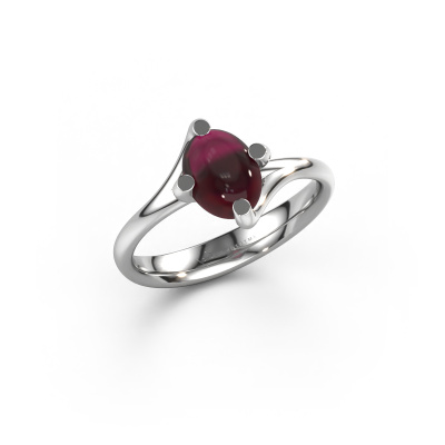 In this photo the platinum Nora ring is set with a cabochon garnet. Cabochon means a garnet is shaped first, not faceted, into a specific shape, such as a drop, heart or oval cabochon. Subsequently, it is polished until the gemstone has a orb shaped surface. A cabochon gemstone is a stunning, classy eye-catcher that matches perfectly with a contemporary as well as a vintage style. Our expert goldsmiths shape the graceful ring to perfection which makes it unique. The cabochon garnet is set so its unique qualities are strengthened. How do you like this trendy platinum ring? Simply customize this Nora ring, using our online tool. Subsequently, your personal graceful Nora ring will be made by hand by our goldsmiths. Precious metals and gemstones can be customized to your liking. Do you have specific preferences which are unavailable in our online tool? Please feel free to contact us. We will customize your personal trendy ring to your liking.After receiving your order, our goldsmiths will passionately start the creative process of making your ring in our own studio. Because we don't have a big stockpile, these costs will not be passed on to you. Our pricing is proof of that! We offer top quality jewels at lowest price, guaranteed.To make it easier for you, we offer a 30 day return policy. Check our terms and conditions.