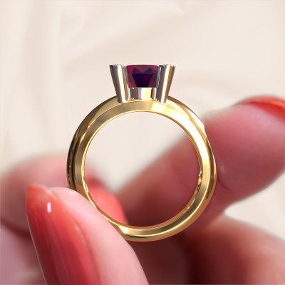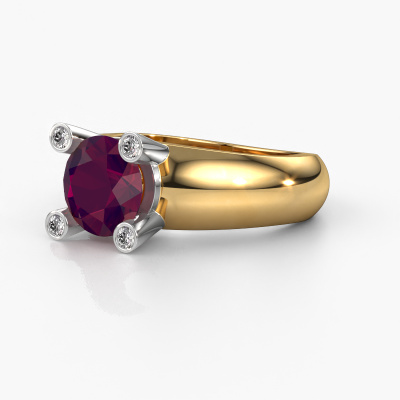 Are you looking for a special ring with an eye-catching single gemstone? How do you like this Tamara RND ring? This gold Tamara RND ring is set with a beautiful 8 mm round rhodolite. The rhodolite is carefully selected by our rhodolite suppliers. Subsequently, these gemstones are then set by our goldsmith according to ancient tradition. The ring will then be polished to perfection creating a unique ring with a stunning rhodolite. Created especially for you. The best part of this special ring is that you can customize it to your own liking. Your style, your choice, your ring. On top of that, your trendy gold ring will be made by hand with eco-friendly materials! Please feel free to easily customize the ring, using our online tool.By using a combination of the latest modern techniques, combined with ancient crafting, we can make all our rings in our own studio. Each jewel is made to order. This is advantageous because we can offer you a price you won't find anywhere else.To make it easier for you, we offer a 30 day return policy. Check our terms and conditions.
