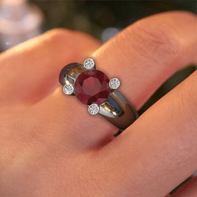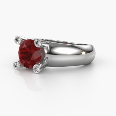 Are you looking for a special ring with an eye-catching single gemstone? How do you like this Tamara RND ring? This white gold Tamara RND ring is set with a beautiful 8 mm round ruby. The ruby is carefully selected by our ruby suppliers. Subsequently, these gemstones are then set by our goldsmith according to ancient tradition. The ring will then be polished to perfection creating a unique ring with a stunning ruby. Created especially for you. The best part of this special ring is that you can customize it to your own liking. Your style, your choice, your ring. On top of that, your trendy white gold ring will be made by hand with eco-friendly materials! Please feel free to easily customize the ring, using our online tool.By using a combination of the latest modern techniques, combined with ancient crafting, we can make all our rings in our own studio. Each jewel is made to order. This is advantageous because we can offer you a price you won't find anywhere else.To make it easier for you, we offer a 30 day return policy. Check our terms and conditions.