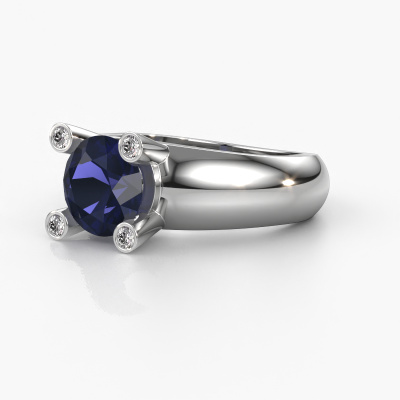 Are you looking for a special ring with an eye-catching single gemstone? How do you like this Tamara RND ring? This white gold Tamara RND ring is set with a beautiful 8 mm round sapphire. The sapphire is carefully selected by our sapphire suppliers. Subsequently, these gemstones are then set by our goldsmith according to ancient tradition. The ring will then be polished to perfection creating a unique ring with a stunning sapphire. Created especially for you. The best part of this special ring is that you can customize it to your own liking. Your style, your choice, your ring. On top of that, your trendy white gold ring will be made by hand with eco-friendly materials! Please feel free to easily customize the ring, using our online tool.By using a combination of the latest modern techniques, combined with ancient crafting, we can make all our rings in our own studio. Each jewel is made to order. This is advantageous because we can offer you a price you won't find anywhere else.To make it easier for you, we offer a 30 day return policy. Check our terms and conditions.