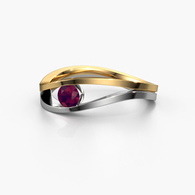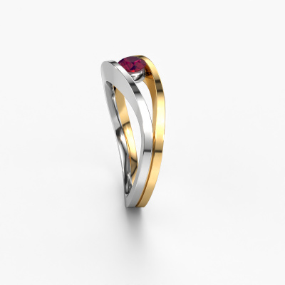 This ring called Sigrid 1 is made of 14 Carat white gold and is set with rhodolite. Are you in the market for a unique white gold ring with a modern twist? Then this ring might suit you. Simply customize to your or her liking. It suits the contemporary modern woman. This twist ring is set with beautiful rhodolite. This has been carefully selected. Because your ring must be adorned with nothing but the most stunning gemstone. Our expert goldsmith will create your ring in our own studio, where the rhodolite will be set with great care. The ring will then be polished to perfection to create a stunning ring. By using our modern techniques, we can design and customize the finest quality jewels with the utmost care for you. Our rings are always priced 30 percent lower than other jewelers. We make rings to order, so we don't have to maintain a large stock. If you have a certain budget, we are more than happy to advice you accordingly.Our team of talented, passionate designers add new ring designs to our online collection daily. Our objective in doing so, is to be able to offer you a wide variety of jewels. Please feel free to request a quote if you have specific wishes for your ring. We guarantee to make you an offer you can't refuse.To make it easier for you, we offer a 30 day return policy. Check our terms and conditions.