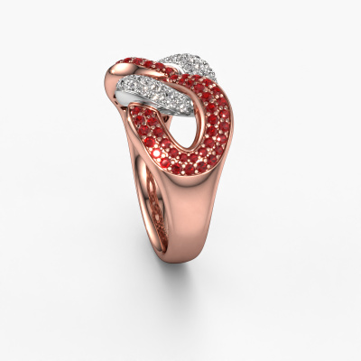 This ring called Kylie 3 11mm is made of 14 Carat rose gold and is set with ruby. Are you in the market for a unique rose gold ring with a modern twist? Then this ring might suit you. Simply customize to your or her liking. It suits the contemporary modern woman. This twist ring is set with beautiful ruby. This has been carefully selected. Because your ring must be adorned with nothing but the most stunning gemstone. Our expert goldsmith will create your ring in our own studio, where the ruby will be set with great care. The ring will then be polished to perfection to create a stunning ring. After receiving your order, our goldsmiths will passionately start the creative process of making your ring in our own studio. Because we don't have a big stockpile, these costs will not be passed on to you. Our pricing is proof of that! We offer top quality jewels at lowest price, guaranteed.