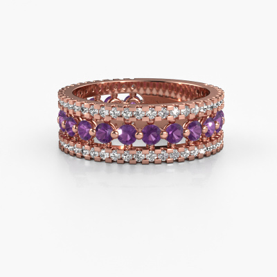 How would you describe your own style? Are you looking for something uniquely different? This beautiful rose gold Elizbeth 2 ring is astonishing! Simply customize to your or her own liking. This ring is set with amethyst. These amethysten have been carefully selected because your ring must be adorned with nothing but the most beautiful gemstone. Wouldn't you agree? Our expert goldsmith will create your ring in our own crafting studios, where the amethyst will be set with care. The ring will then be polished to perfection to give it that extra sparkle. It's a perfect ring for a woman of excellent taste!The best part of this beautiful ring is that you can customize it to your own liking. Your style, your choice, your ring. On top of that, your vintage rose gold ring will be made by hand with eco-friendly materials! Please feel free to easily customize the ring, using our online tool.Because we design and deliver our own rings, we can offer you a ring at a price you won't find anywhere else. A ring is made to order, which helps prevent excess supplies, so we can make you a great price offer. We understand it feels risky, buying your ring online, but we will gladly assist in the designing process, taking your budget into consideration.To make it easier for you, we offer a 30 day return policy. Check our terms and conditions.