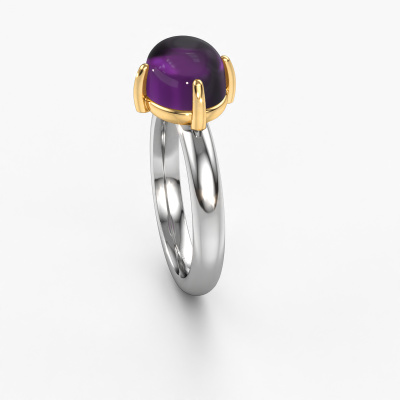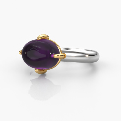 In this photo the white gold Melodee ring is set with a cabochon amethyst. Cabochon means a amethyst is shaped first, not faceted, into a specific shape, such as a drop, heart or oval cabochon. Subsequently, it is polished until the gemstone has a orb shaped surface. A cabochon gemstone is a stunning, classy eye-catcher that matches perfectly with a contemporary as well as a vintage style. Our expert goldsmiths shape the charming ring to perfection which makes it unique. The cabochon amethyst is set so its unique qualities are strengthened. Our goldsmiths passionately create your customized ring to your liking with the utmost care. The white gold ring, as shown here, can be customized using our online tool. Feel free to ask our jewel designers for assistance if you want changes made which are unavailable in our online tool. We are happy to answer your questions.After receiving your order, our goldsmiths will passionately start the creative process of making your ring in our own studio. Because we don't have a big stockpile, these costs will not be passed on to you. Our pricing is proof of that! We offer top quality jewels at lowest price, guaranteed.To make it easier for you, we offer a 30 day return policy. Check our terms and conditions.
