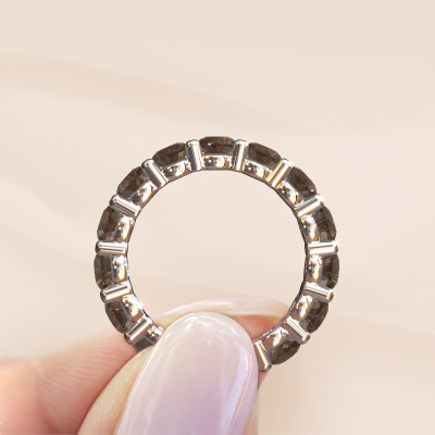This exclusive white gold Heddy rnd 4.2 ring is a true work of art! This ring is made of 14 Carat white gold and is set with 4.2 mm round smokey quartz. The smallest ornaments are crafted by our goldsmith with a lot of patience and great passion. In order to create this ring with great precision, this craft requires a keen eye and a skillful hand. A challenge which ignites a fire in our expert goldsmiths. The exquisite smokey quartz are set in a way that their unique qualities are strengthened. This gives the ring an even more glamorous appearance. The ring is unique by itself though, because of the natural birthstones we selected especially for this Heddy rnd 4.2 ring. And by choosing the precious metal yourself, you create a unique ring. The best part of this eternity ring is that you can customize it to your own liking. Your style, your choice, your ring. On top of that, your exclusive white gold ring will be made by hand with eco-friendly materials! Please feel free to easily customize the ring, using our online tool.After receiving your order, our goldsmiths will start the creative process of making your Heddy rnd 4.2 ring. We don't keep stock. This is advantageous because these costs will not be passed on to you. Therefore, we can offer jewelry at exceptionally low prices.To make it easier for you, we offer a 30 day return policy. Check our terms and conditions.