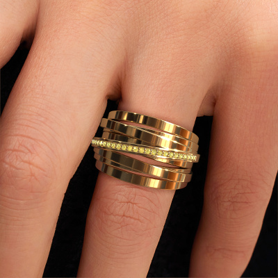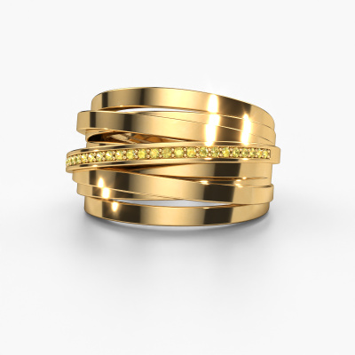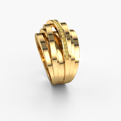 Because of its detailed finish, this wide ring with yellow sapphire has a stylish appearance. A shanks ring that fits the contemporary woman like a glove. This gold ring, our Swinda, is a true eye-catcher indeed! As soon as we know what you desire, we will create your ring in our own crafting studio. We work according an innovative process. We use a combination of the latest techniques and ancient traditional craftsmanship, so we are able to create a perfectly designed ring. Our expert goldsmiths strive for perfection so they won't stop until a perfect ring, a true work of art, is created especially for you!A customized unique ring is the perfect gift! New exquisite designs are added daily by our team of passionate goldsmiths. And each design can be customized. Simply customize the precious metals and the color of gemstones which will be used, for example. This makes your design of the unique Swinda ring truly unique!Because we design and deliver our own rings, we can offer you a ring at a price you won't find anywhere else. A ring is made to order, which helps prevent excess supplies, so we can make you a great price offer. We understand it feels risky, buying your ring online, but we will gladly assist in the designing process, taking your budget into consideration.To make it easier for you, we offer a 30 day return policy. Check our terms and conditions.
