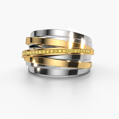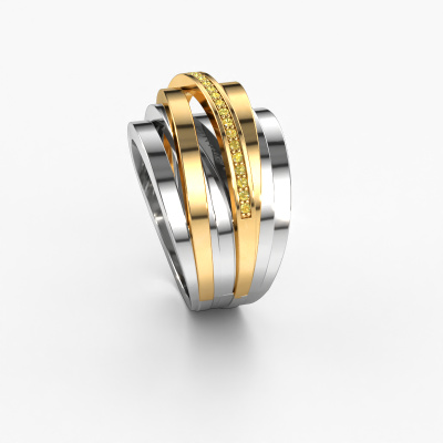 Because of its detailed finish, this wide ring with yellow sapphire has a stylish appearance. A shanks ring that fits the contemporary woman like a glove. This white gold ring, our Swinda, is a true eye-catcher indeed! As soon as we know what you desire, we will create your ring in our own crafting studio. We work according an innovative process. We use a combination of the latest techniques and ancient traditional craftsmanship, so we are able to create a perfectly designed ring. Our expert goldsmiths strive for perfection so they won't stop until a perfect ring, a true work of art, is created especially for you!A customized unique ring is the perfect gift! New exquisite designs are added daily by our team of passionate goldsmiths. And each design can be customized. Simply customize the precious metals and the color of gemstones which will be used, for example. This makes your design of the unique Swinda ring truly unique!Because we design and deliver our own rings, we can offer you a ring at a price you won't find anywhere else. A ring is made to order, which helps prevent excess supplies, so we can make you a great price offer. We understand it feels risky, buying your ring online, but we will gladly assist in the designing process, taking your budget into consideration.To make it easier for you, we offer a 30 day return policy. Check our terms and conditions.
