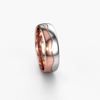 A unique ladies wedding ring, especially designed by our own jewel designers. An unusual ring that matches each style. This modern wedding ring WH0701L36AP is made by hand by our goldsmiths in our own crafting studio. By using a combination of the most modern techniques and ancient craftsmanship, your WH0701L36AP ring is created to perfection. This ladies wedding ring has an ±0.24 in (6 mm) width and has a shiny finish. Here, the modern white gold wedding ring is shown in the combination white gold with rose gold. An exquisite wedding ring, a celebration of your wedding day!