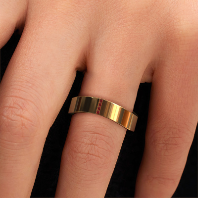 A unique ladies wedding ring, especially designed by our own jewel designers. An unusual ring that matches each style. This design wedding ring WH2046LP is made by hand by our goldsmiths in our own crafting studio. By using a combination of the most modern techniques and ancient craftsmanship, your WH2046LP ring is created to perfection. This ladies wedding ring has an ±0.20 in (5 mm) width and has a shiny finish. Here, the design gold wedding ring is shown. An exquisite wedding ring, a celebration of your wedding day!Gold represents love and therefore our goldsmith loves using it in the design of your design wedding ring. We are a proud member of the Responsible Jewellery Council. This means we only use eco-friendly gold. Something we take great pride in, obviously. It is also possible to use your own gold in the design of your wedding ring. Each jewel is made by hand in our own artisan studio so we can offer this option. This gives you the opportunity to add an extra personal touch to your ring. A ring with its own history!Do you have special preferences regarding your wedding ring? For instance, a smaller or a wider band? Or perhaps a shiny or a matte ring? There are numerous variations possible. You can always discuss the possibilities with our jewelry designers. If you have certain wedding rings in mind, our designers will gladly help by drawing the rings of your dreams. Be sure to contact us!By combining our modern techniques with ancient crafting, we can design and customize the finest quality jewels with the utmost care for you at the best price. Our wedding rings are always priced 30% lower than those of other jewelers. We make wedding rings to order so we don't have to maintain a large stock.To make it easier for you, we offer a 30 day return policy. Check our terms and conditions.